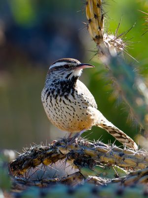 A Cactus Wren (the Arizona State Bird) on a cactus.